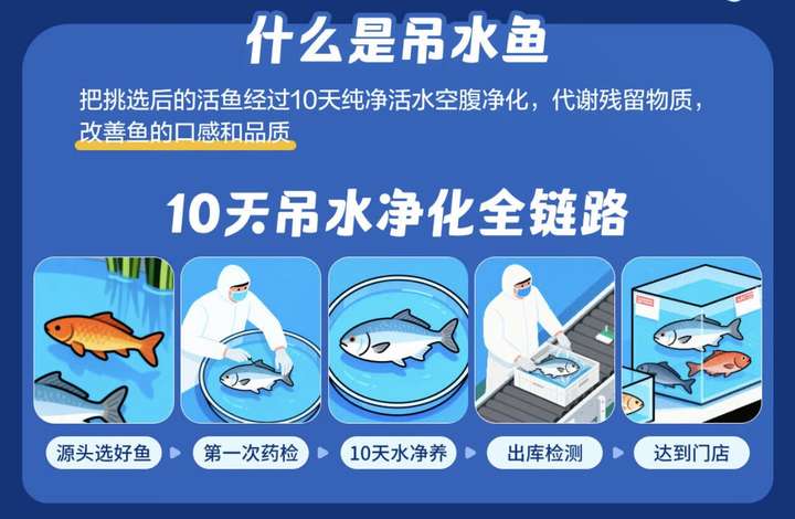 “吊水鱼”并非新的鱼类品种,而是一种特殊的、旨在提升鱼肉品质的暂养方式。“吊水”是对这一过程的形象化说法,其核心过程是将已经达到上市规格的鱼,从原本可能拥挤的鱼塘或网箱中,转移到洁净流动的活水环境中,并在此进行一段时间的“节食”和“锻炼”,使其自然代谢杂质、排出腥味物质。很多常见的淡水鱼都可以进行吊水处理,目前京东七鲜已上线鲤鱼、草鱼、鲫鱼、鮰鱼等多款吊水鱼品类。