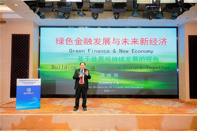 大会期间,西南财经大学西财智库主任、首席经济学家、国务院政府特殊津贴获得者汤继强教授出席本会议,并就《绿色金融发展与未来新经济:基于世界可持续发展的视角》发表演讲,从全球视野深入剖析了绿色金融在推动经济转型与可持续发展中的核心作用,为金融强国战略的实施提供了重要理论支撑。以下是汤继强教授发言摘录。