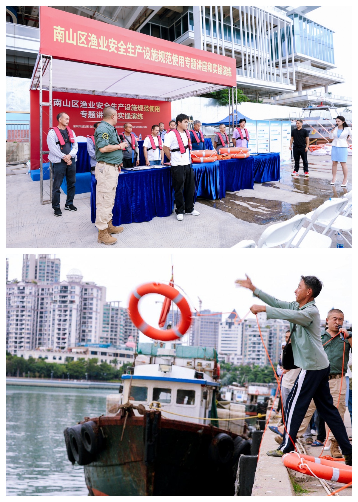 近日,深圳市规划和自然资源局南山管理局(下称“南山管理局”)联合深圳市海洋综合执法支队南山大队,在蛇口渔港成功举办渔业安全生产设施规范使用专题讲座与实操演练活动,活动以“理论+实操”形式开展,内容兼具政策性与实用性,辖区近百名渔民踊跃参与。