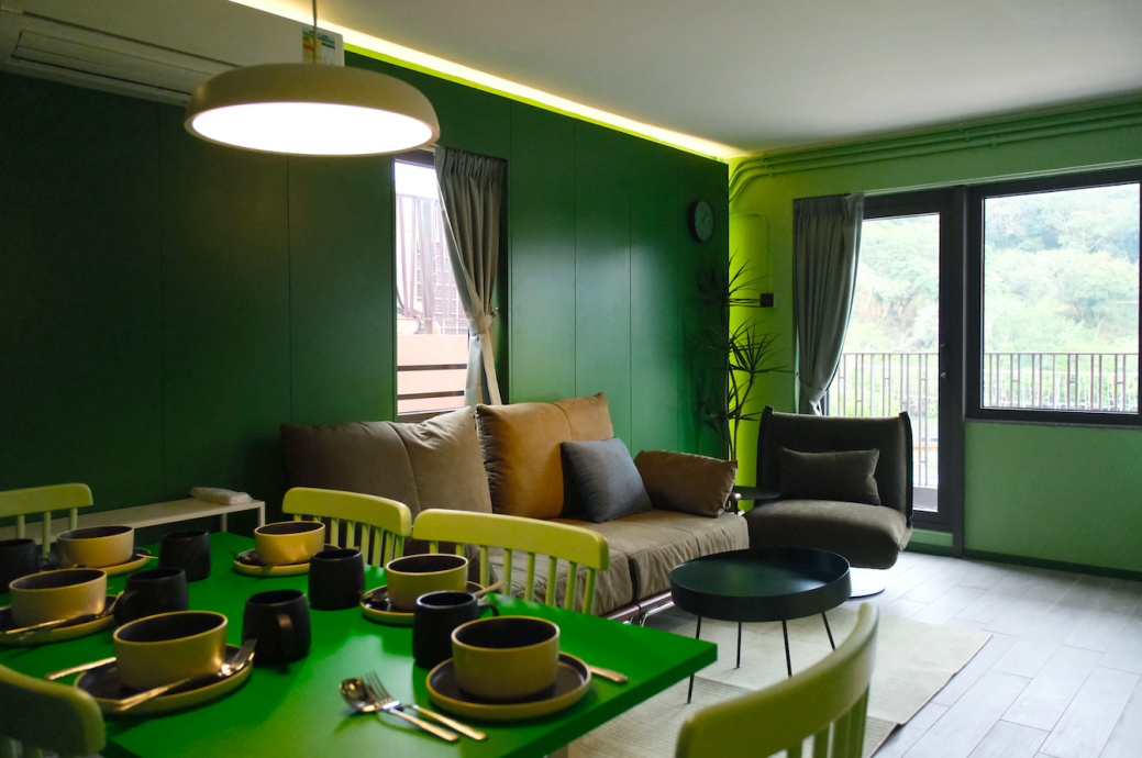 汲取大自然的静谧绿意,为都市人提供一个「深呼吸」的空间。室内以清新绿色贯穿,配合大地色系的质感家私,呈现明亮且充满活力的氛围。客厅无缝连接私人阳台,将户外的海风与绿意引入室内,让您彻底卸下疲惫,沉浸于贴近自然的慢活节奏。