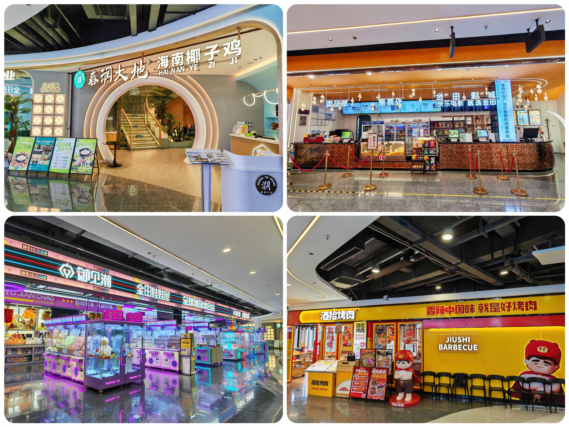 金田影城带来沉浸式观影体验;麦当劳、春润大地海南椰子鸡旗舰店、麻辣英雄重庆火锅、探鱼、蛙来哒、酒拾烤肉等美食矩阵,覆盖从快餐到特色正餐的多元选择。